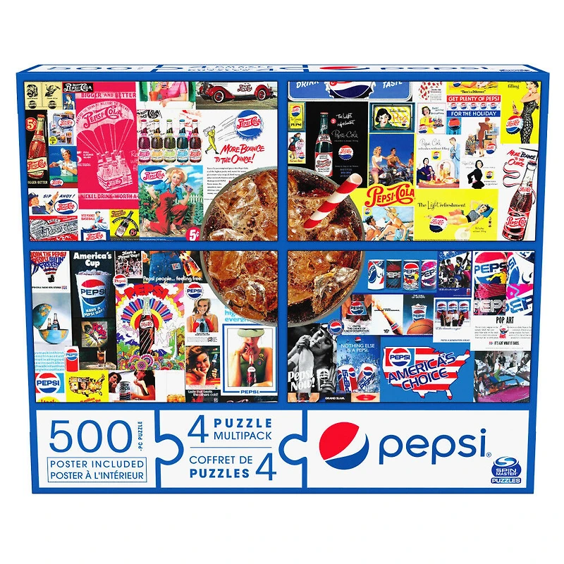 Pepsi, Coffret de 4 puzzles, 500 pièces qui se combinent pour former un méga puzzle sur le thème du célèbre soda
