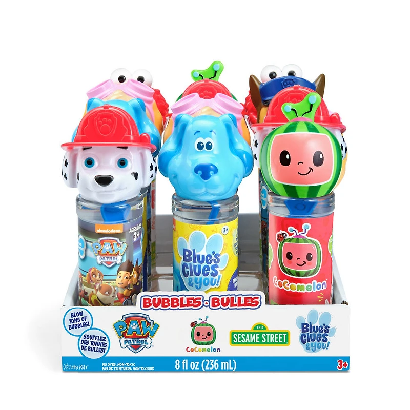 Désormais, les enfants peuvent faire des bulles avec les personnages les plus populaires de Nickelodeon et de Sesame Street. Comprend Paw Patrol,