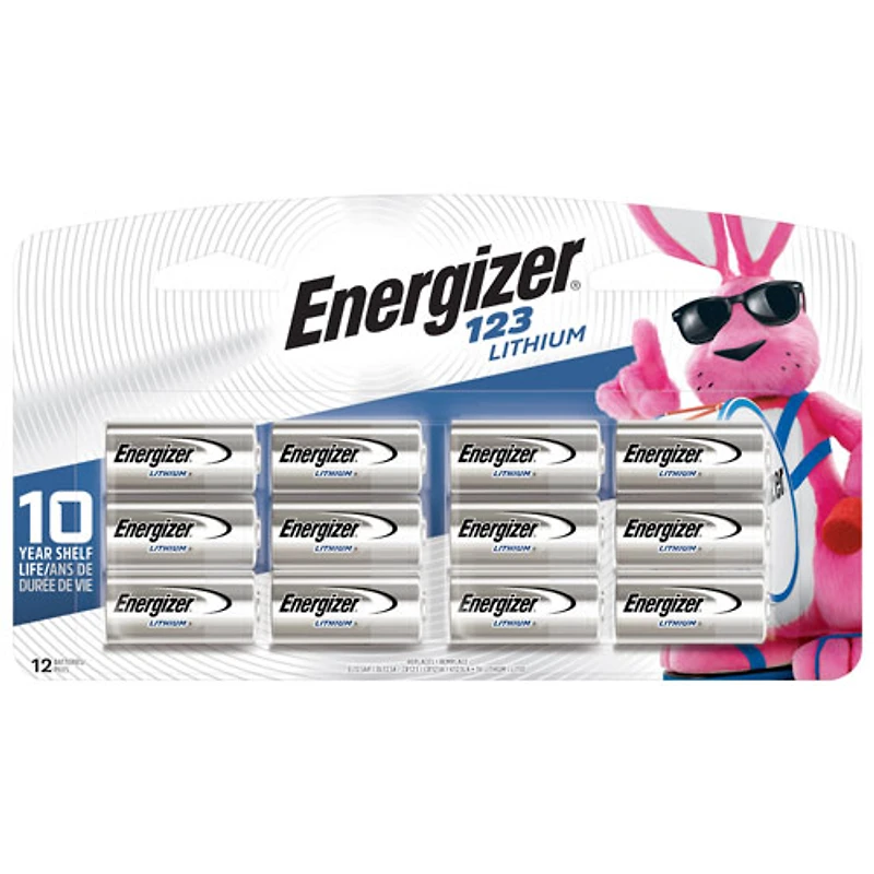 Comprend douze piles de 3 V au lithium 123 d'Energizer Conçues pour offrir une puissance qui dure pour les appareils de pointe et les appareils photo numériques Piles durant jusqu'à 10 ans quand elles ne sont pas utilisées