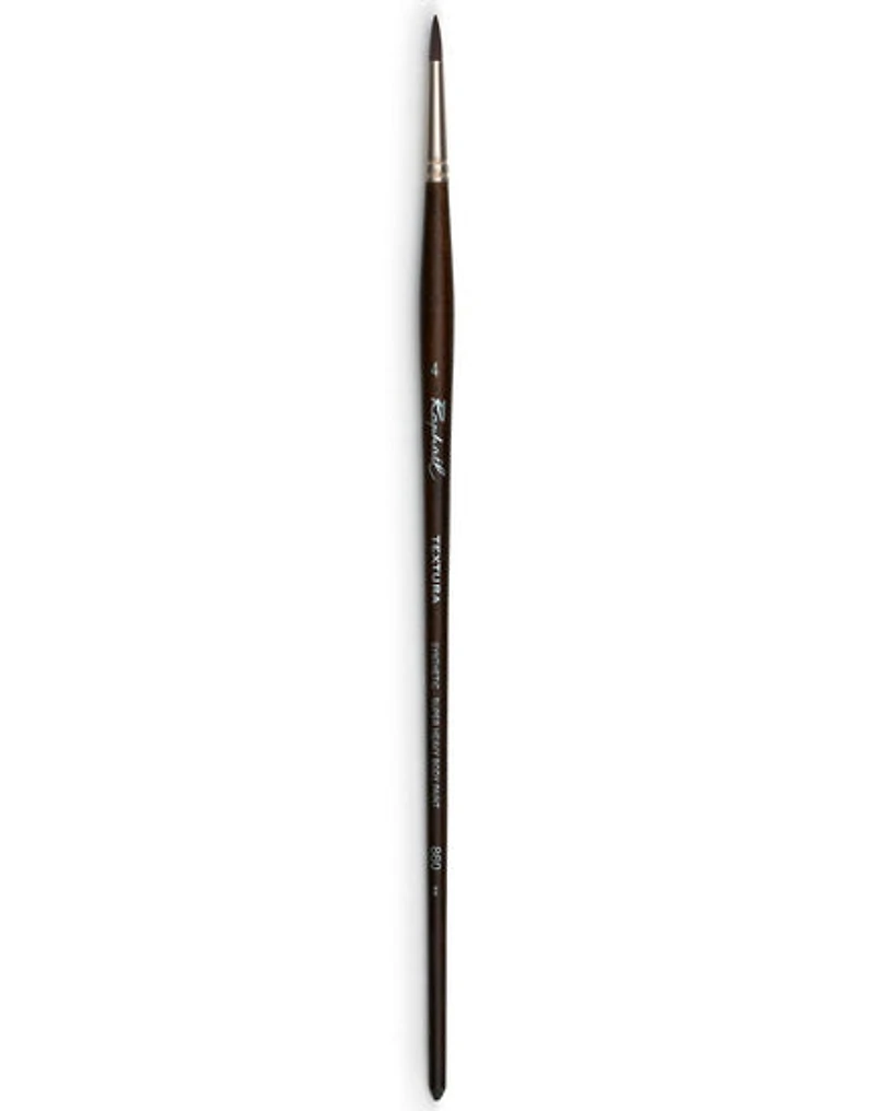 Pinceau rond en poils synthétiques avec un long manche teinté ébène. Idéal pour la peinture acrylique, les détails, les contours et les retouches.Poils Textura = Nervosité + Résistance. L'outil idéal pour les peintures épaisses. La gamme de pinceaux Textura est destinée aux artistes qui peignent en empâtement et souhaitent créer des effets de relief avec des acryliques épais et gels de structure. Ces brosses, constituées de fibres synthétiques courtes, rigides et très résistantes, offrent une excellente réponse sur le support.Virole : laiton nickelé matLong mancheRapha?l fabrique des pinceaux depuis 1793.Entretien : L’entretien est une étape essentielle pour prolonger la durée de vie de vos pinceaux et les garder en bonne condition.Aquarelle : tremper dans l’eau et rincer à l’eau tiède.Huile : tremper dans un solvant, nettoyer à l’eau savonneuse et rincer à l’eau tiède.Acrylique : nettoyer à l’eau savonneuse et rincer à l’eau tiède.Informations pratiques :Ne jamais laisser sécher avant le nettoyage. L’utilisation d’un nettoyant à pinceau hydratant après l’usage du solvant ou du savon prévient l’assèchement des poils et préserve leur souplesse.