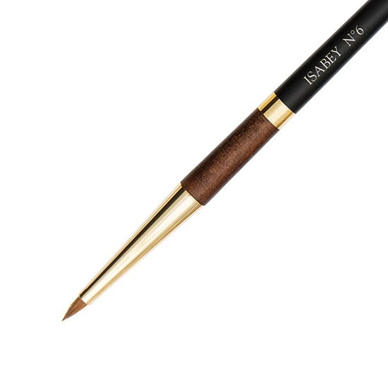 Particulièrement adaptés à l'aquarelle, les pinceaux Kolinsky de Isabey sont appréciés pour la finesse de leur touffe en poil de martre Kolinsky pure, qui leur confère du ressort, de l’élasticité et une excellente nervosité. Ce pinceau présente une pointe idéale pour les retouches et les touches de finition. Le manche est lazuré et noir, la virole en laiton nickelé et la bague or.