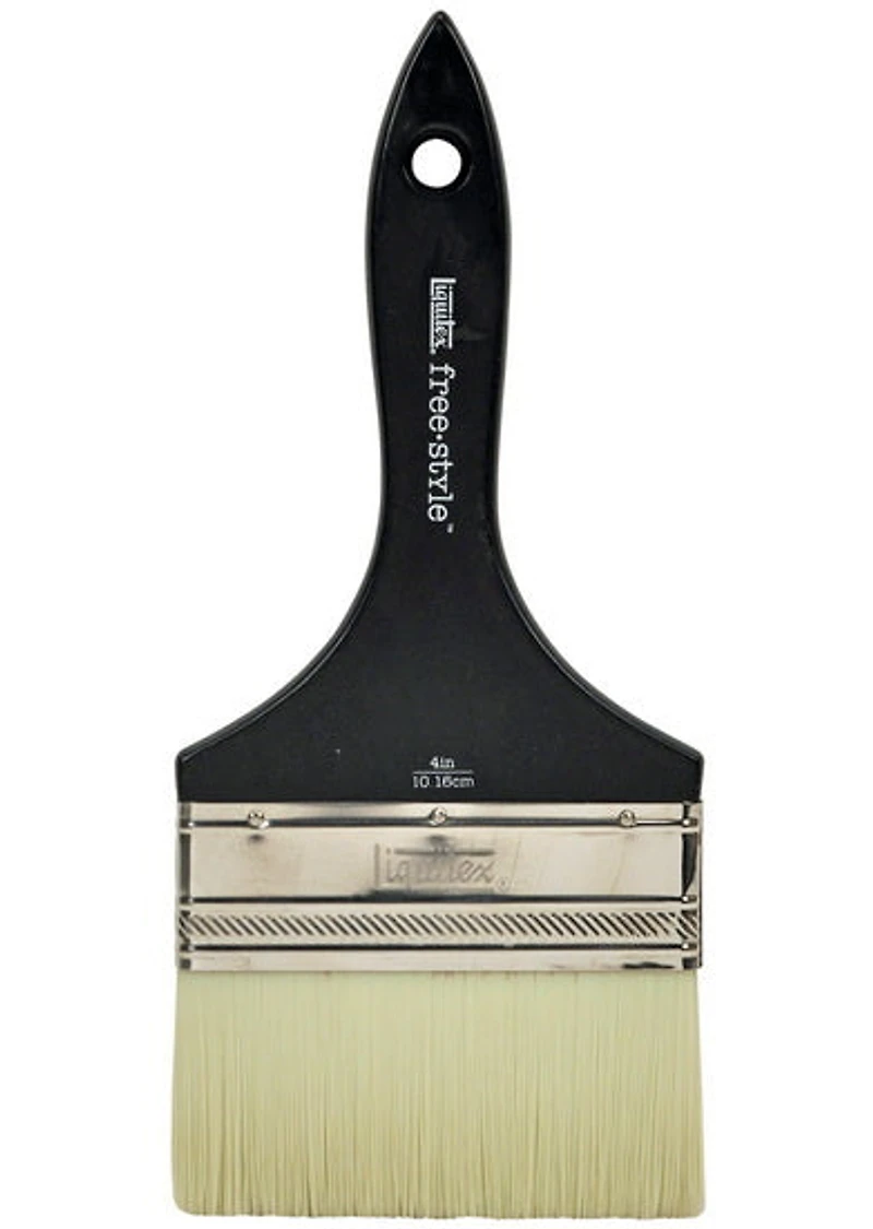 Pinceau à manche confortable, antidérapant et fini mat, fabriqué en bois d’excellente qualité avec des poils synthétiques parmi les meilleurs sur le marché. Voici un pinceau pour artistes professionnels qui offre la durabilité requise pour les projets à grande échelle. Le manche long est facile à saisir pour les coups de pinceau rapides sur les toiles de grandes dimensions ou pour atteindre les endroits en hauteur. Les pinceaux larges Freestyle répondent aux besoins croissants des artistes qui créent des œuvres de grands formats à l’acrylique.  Spécifications :Tailles disponibles : 1, 2, 3 et 4 pouces de largeurVirole : acier inoxydableManche : profilé en satin noirType de poils: synthétiquesTechniques et applications :Couvre de grandes surfacesPour vernirPour coups de pinceau larges et rapidesEntretien : L’entretien est une étape essentielle pour prolonger la durée de vie de vos pinceaux et les garder en bonne condition.  Acrylique : nettoyer à l’eau savonneuse et rincer à l’eau tiède. Informations pratiques : Ne jamais laisser sécher avant le nettoyage.  L’utilisation d’un nettoyant à pinceau hydratant après l’usage du solvant ou du savon prévient l’assèchement des poils et préserve leur souplesse.
