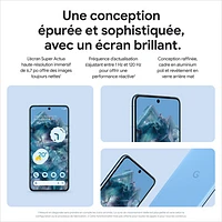 Le Pixel 8 Pro de Google est un téléphone épuré et raffiné qui offre tout ce dont vous avez besoin. Il est doté d'un système de caméras mises à jour avec des commandes avancées offrant des images de grande qualité, même dans des conditions de faible éclairage. De plus, il est doté de fonctions de sécurité personnelle pour vous aider à vous préparer et à obtenir de l'aide en cas d'urgence. Le Pixel 8 Pro est optimisé par l'intelligence artificielle de Google pour vous aider à en faire plus, plus rapidement que jamais.