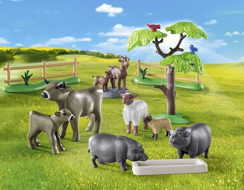 There is still room on your farm? Then let these great farm animals move in with you. Cow, goat, sheep and pot-bellied pig are looking forward to a cozy home in the barn and on the pasture, where they are cared for. The large organic farm from PLAYMOBIL invites children aged 4 and up to discover a new side of country life. The richly detailed sets with lovely characters inspire kids to imaginative roleplay adventures and encourage a mindful use of our natural resources.