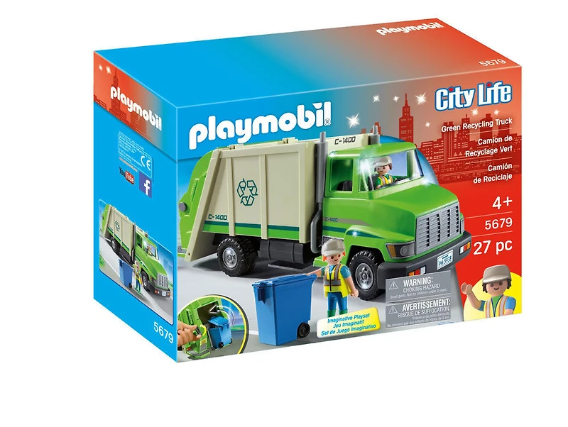 Réduis, trie et recycle les déchets avec le Camion de Recyclage Vert PLAYMOBIL. Conduis le camion pendant la tournée de collecte des déchets. Vide les poubelles de leurs déchets dans la benne du camion en les fixant à l'arrière du camion et en actionant la manivelle lève-conteneurs.