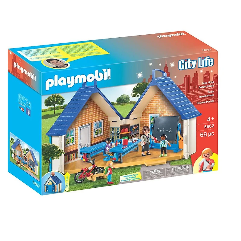 Apprends pleins de nouvelles leçons à l'École Transportable PLAYMOBIL. Rends tes devoirs à la maîtresse, et participe aux leçons de lecture, d'écriture et de mathématiques. C'est ton tour d'aller au tableau! As-tu les bonnes réponses? Joue avec ton imagination!