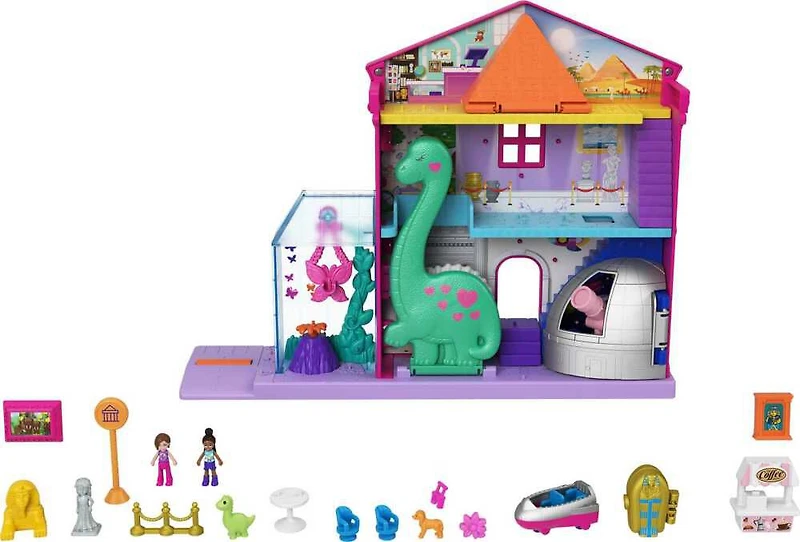 Jumelez ce coffret avec le coffret de jeu Sortie éducative Pollyville Polly Pocket avec Shani pour créer une expérience de musée complète avec zone de jeu (chacun vendu séparément, selon disponibilité).