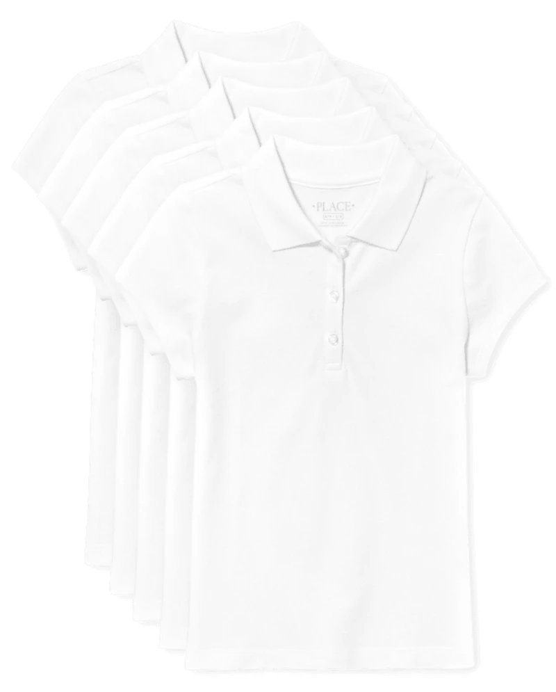 Polos à volants en piqué extensible doux pour filles, lot de 5 - Grande taille