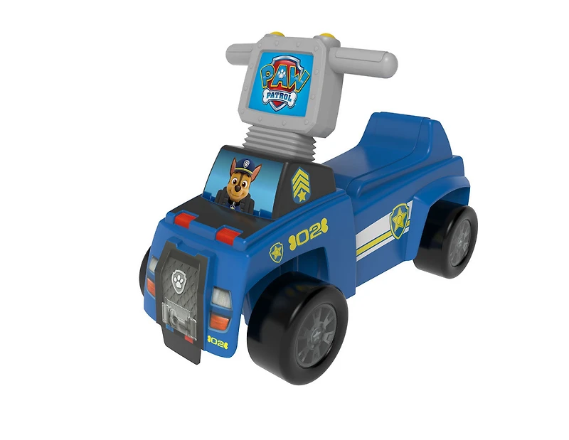 Le porteur de secours Push N Scoot Chase de Pat' Patrouille est le véhicule-porteur parfait pour votre enfant. Avec des poignées faciles à assembler, des sons et la chanson-thème de Pat' Patrouille que vous pouvez entendre en appuyant sur un bouton, ce véhicule comporte de belles images colorées et est outillé pour ressembler à la voiture de Chase. Ce véhicule-porteur est le mode de transport parfait pour votre enfant. Comprend aussi siège confortable et des roues extra larges pour plus de stabilité.