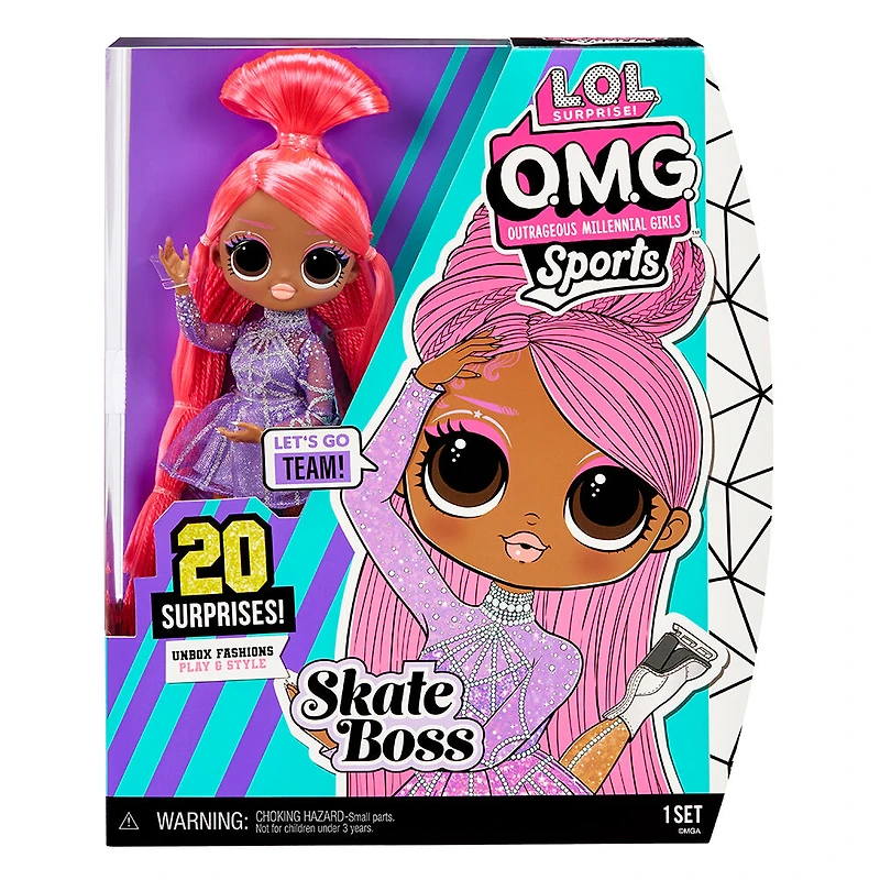 Voici la toute nouvelle poupée-mannequin L.O.L. Surprise O.M.G. Sports, Skate Boss, avec 20 surprises ! Nous, les soeurs, sommes là pour gagner, la compétition est féroce mais nous le sommes aussi. Avec le coeur d'une championne et la force d'une reine, nous surprenons toujours le monde. Skate Boss a de superbes traits, de beaux cheveux et un style audacieux bien à elle. Les plus récentes poupées-mannequins L.O.L. Surprise O.M.G. sont de grandes amies inattendues, qui célèbrent les différences entre amis et cela les rend plus fortes. Il y a 2 nouveaux personnages O.M.G. Sports représentant le soccer et le patinage sur glace pour le jeu ou la présentation! Chaque boîte inclut une poupée-mannequin L.O.L. Surprise O.M.G., 2 tenues, des chaussures, des accessoires, une brosse à cheveux et un socle de poupée. Collectionnez les deux poupées L.O.L. Surprise O.M.G. Sports de série limitée, Kicks Babe et Skate Boss !