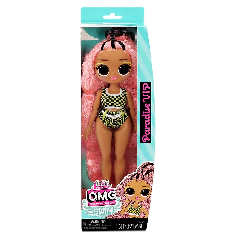 Il y a une fête à la piscine ! Voici la poupée-mannequin LOL Surprise OMG Swim, Paradise VIP ! Paradise VIP est prête à aller à la plage ou à la piscine dans son superbe maillot de bain. Elle a des traits magnifiques, des articles mode fabuleux, de beaux cheveux enracinés et son propre style unique. De plus, elle est articulée pour lui faire prendre une foule de poses ! Pour la toute première fois, l'emballage spécial révèle la poupée-mannequin dans une boîte à fenêtre. Collectionnez Coastal Q.T. et Coral Waves pour compléter la collection de la série OMG Swim ! De MGA Entertainment, créateurs des poupées LOL Surprise, des poupées Rainbow High, des poupées Na Na Na Surprise, de Little Tikes, des poupées Poopsie Surprise et de nombreuses autres marques préférées. C'est un excellent cadeau pour les enfants.