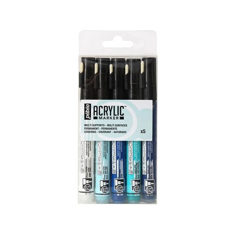 Pqt 5 marqueurs acrylique - 1.2mm - asst bleu