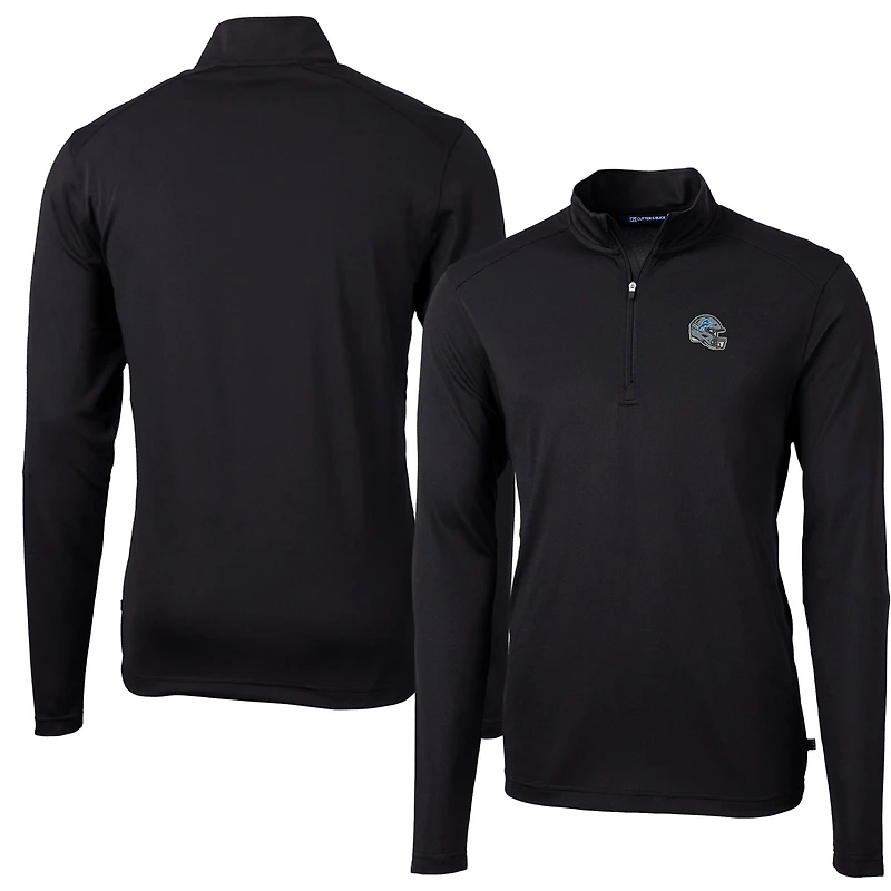 Pull-over zippé quart de tour en piqué écologique recyclé pour homme, modèle noir des Detroit Lions, Cutter & Buck
