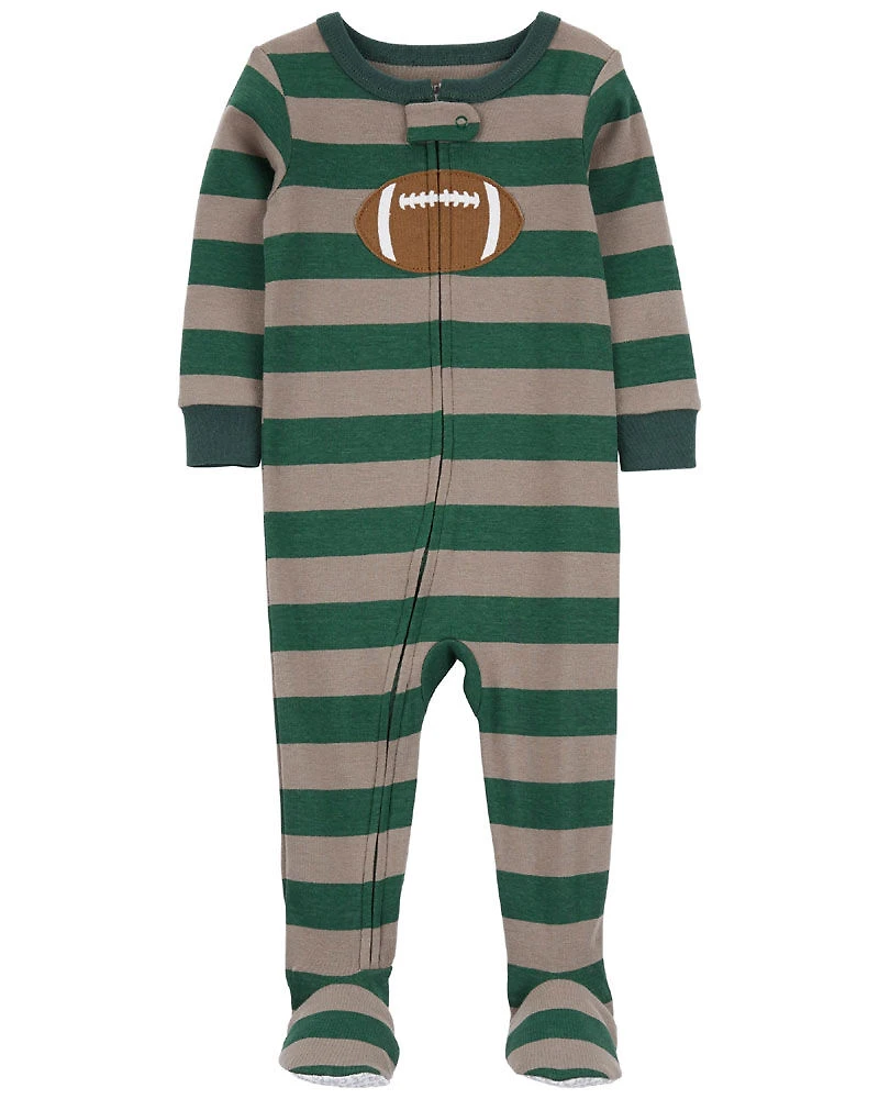 Pyjama 1 pièce à pieds en coton ajusté à imprimé de ballon de football vert Carter's