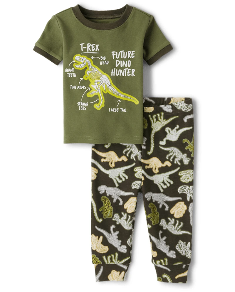 Pyjama en coton ajusté Dino pour bébés et tout-petits garçons
