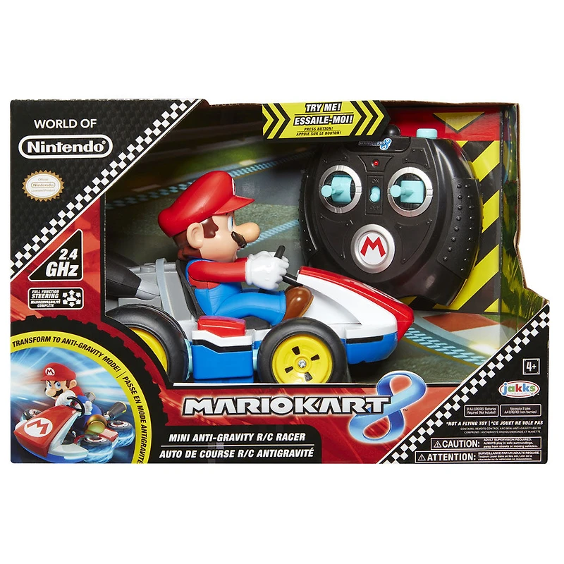 Le Monde de Nintendo est fier de vous présenter leur nouveau Mini Racer téléguidé Mario Kart. Mario peut compétitionner en mode standard ou faire des mouvements et des tours en mode antigravité. Avec plus de performance, vous pouvez faire des wheelies et des tours 360 !