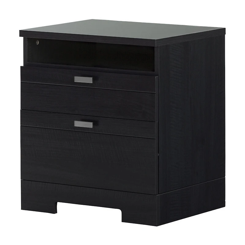UN MEUBLE POUR LA VRAIE VIE : les 2 profonds tiroirs de cette table de chevet sont accompagnés d'un compartiment de rangement ouvert pratique pour y mettre des livres. Ce meuble est également équipé d'une pince pour faciliter la gestion des câbles.