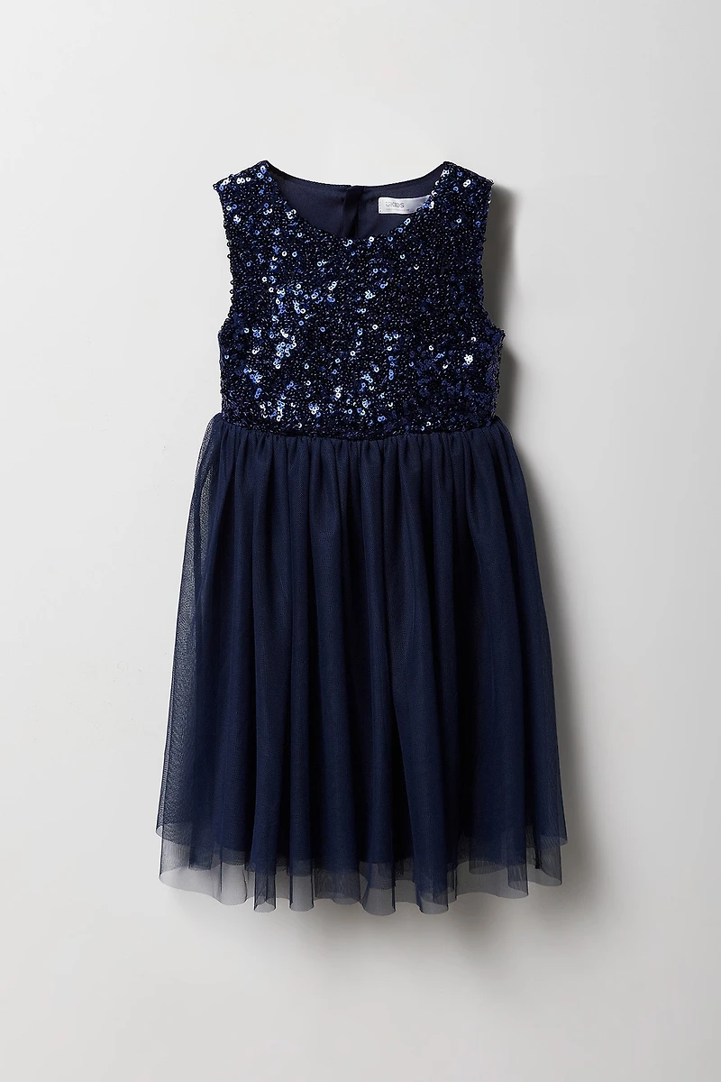 Robe à jupe virevoltante en tulle avec paillettes pour fille