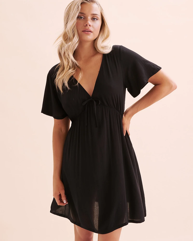 La robe courte en gaze de Tropik est l’incarnation du style et de la fonctionnalité. Conçue pour les femmes spontanées, cette robe à manches courtes et encolure en V présente des fronces à la taille et une bande élastique sous la poitrine avec un cordon d'attache, offrant ainsi un ajustement parfait et une silhouette flatteuse. Sa longueur de 35 pouces permet une liberté de mouvement tout en restant élégante et pratique. Let tissu en transparence permet une texture légère et agréable à porter. Disponible en noir, cette robe est idéale pour un look à la fois décontracté et raffiné, cette robe reflète l’essence de Tropik : un équilibre parfait entre fonctionnalité et esthétique pour accompagner la femme dans toutes ses activités.