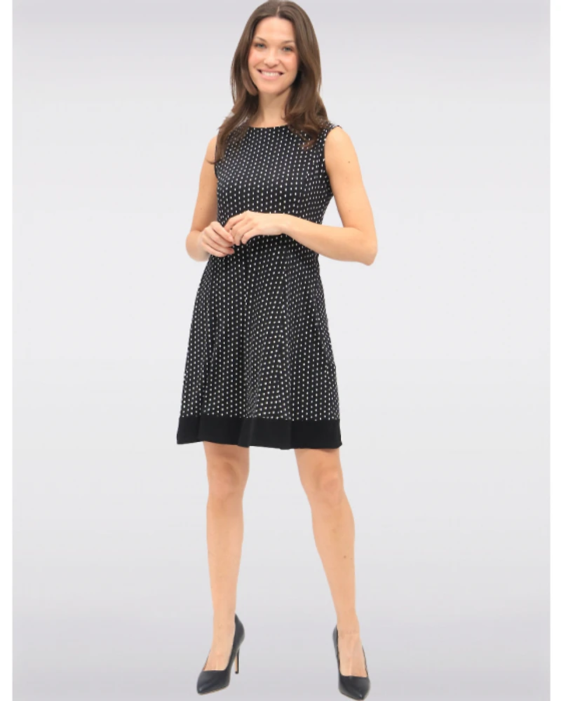 Robe Évasée Sans Manches à Pois avec Ourlet Contrastant par Vamp