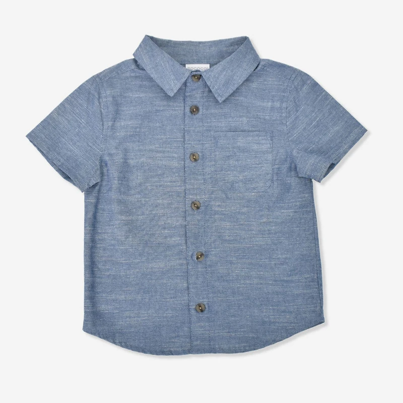 Rococo chemise en Chambray pour garçons. Chemise à manches courtes, avec ouverture boutonnée à l'avant et poche poitrine. Sera un excellent ajout à la garde-robe de votre tout-petit.