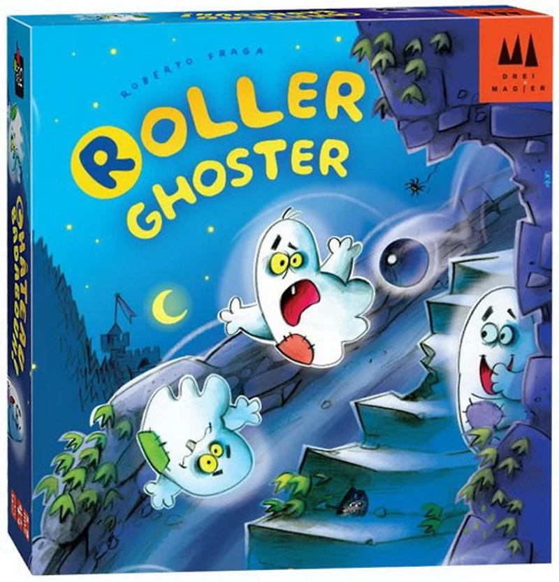 C’est l’heure de la course annuelle des fantômes dans Roller Ghoster, avec les joueurs qui courent pour grimper en premier au sommet du manoir en ruine ! Mais méfiez-vous; les invités à l’intérieur de la maison lanceront des objets sur vous et les autres joueurs. De la ligne Drei Magier de Schmidt, Roller Ghoster enseigne aux enfants la gestion des risques en utilisant un mécanisme similaire à Fireball Island. Les joueurs peuvent choisir la piste intérieure au fur et à mesure qu’ils courent vers le haut, ce qui est plus long mais beaucoup plus sûr des objets volants. Ou, les joueurs choisissent la piste extérieure qui est un chemin plus rapide vers le sommet – mais un risque beaucoup plus élevé d’être touché par un objet volant et de les renvoyer au début. À chaque lancer, les joueurs tordent le sommet de la tour en libérant des billes qui descendent du manoir vers les meeples fantômes des joueurs alors qu’ils tentent de grimper au sommet. Choisirez-vous le chemin sûr et lent, ou troquerez-vous la vitesse contre un risque de collision ?