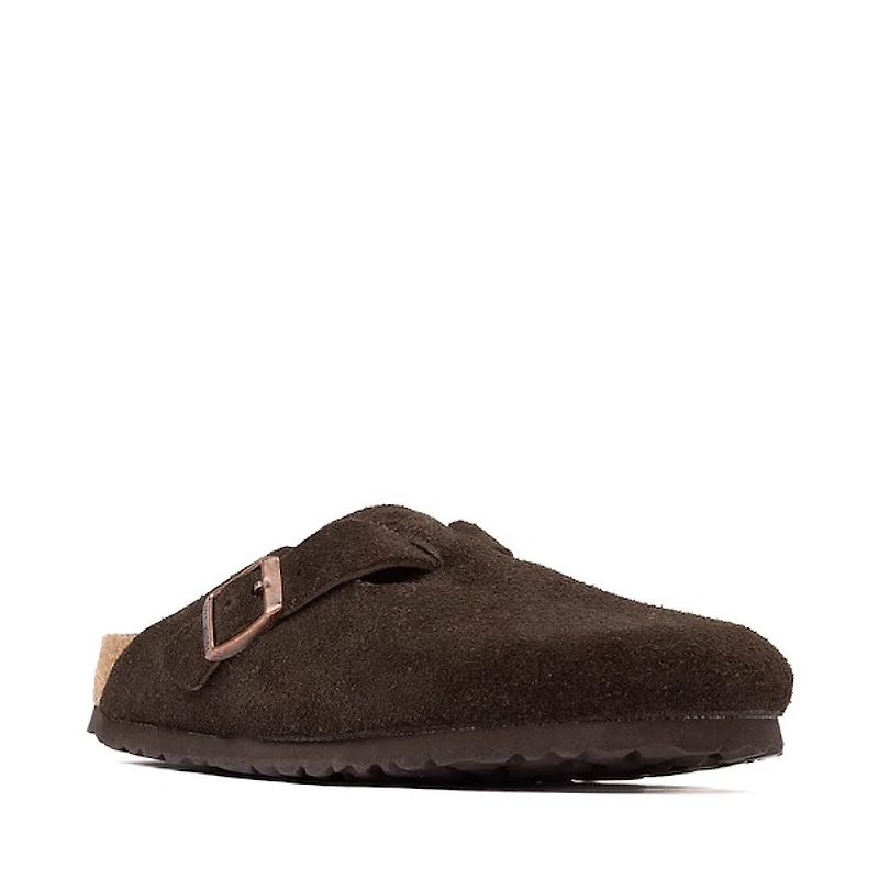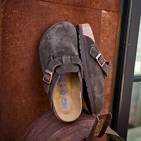 Profite du look classique et du confort inégalé du nouveau sabot Boston Soft Footbed de Birkenstock! Silhouette emblématique conçue pour un confort optimal, le sabot Boston Soft Footbed est doté d'une tige en suède de qualité et d'une couche supplémentaire en mousse douce insérée entre la semelle intercalaire en liège et le revêtement en suède pour plus de confort.