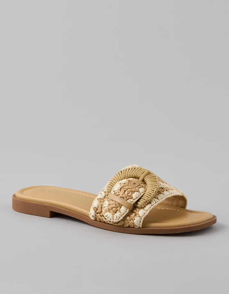 Accueille l’été avec cette sandale ornée d’une boucle en raphia.