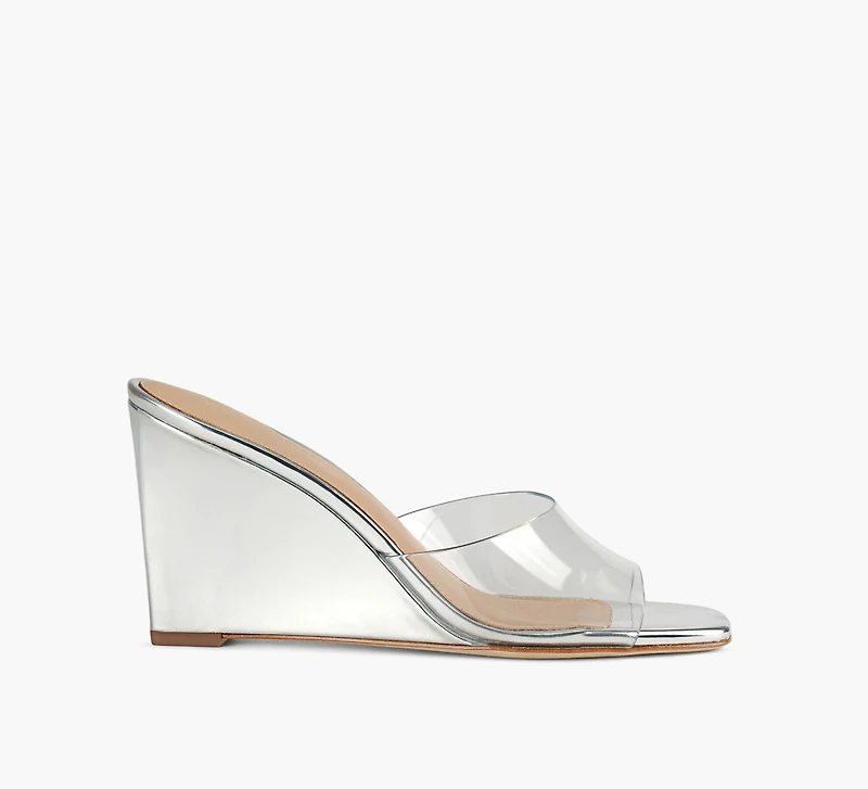 La sandale compensée Asha de Veronica Beard séduit par son design épuré et contemporain. Dotée d’une bride transparente en PVC et d’un talon compensé à finition métallisée, elle allonge visuellement la silhouette. La semelle intérieure légèrement rembourrée assure un confort optimal, tandis que la conception à enfiler facilite le port du jour au soir. Une sandale raffinée, parfaite pour la saison estivale.