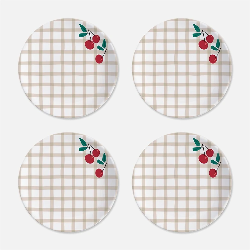 S&Co Assiettes à dîner cerises en mélamine, ensemble de 4