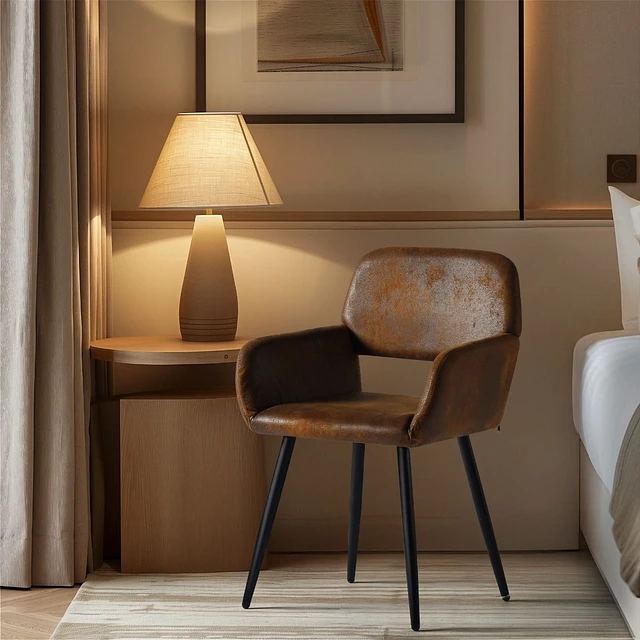 Set of 2 Brown Suede Dining Chairs by Maison Classique