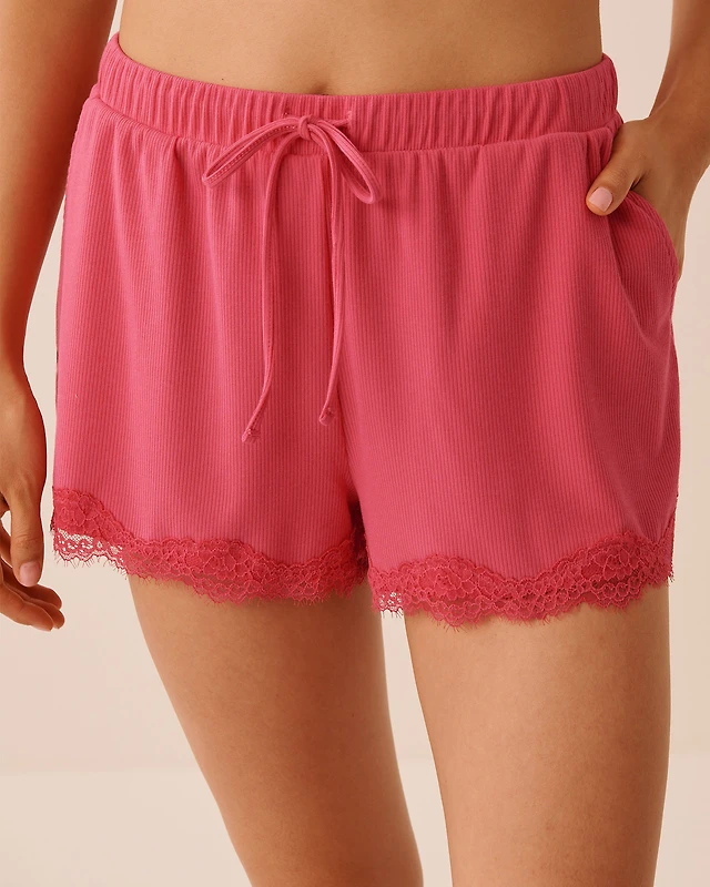 Chemisier manches courtes en modal côtelé et bordures de dentelle