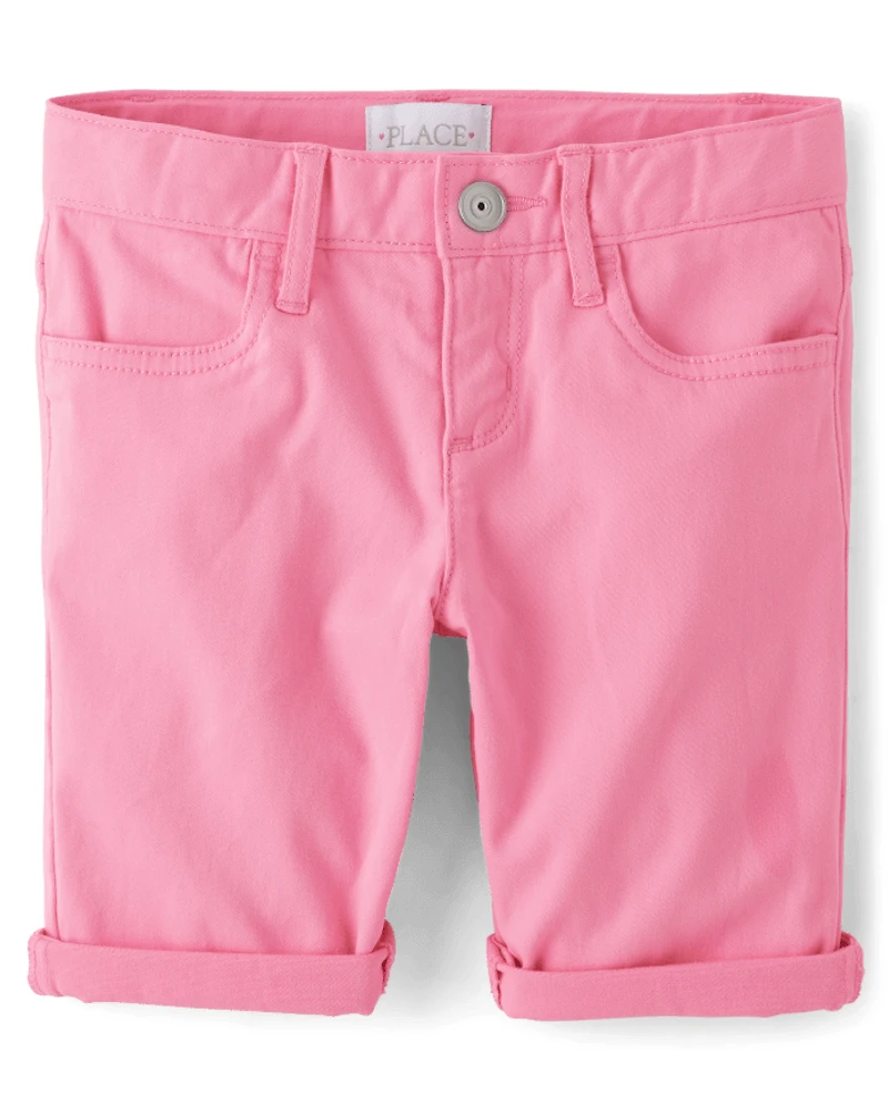 Short en sergé à revers retroussés pour fille