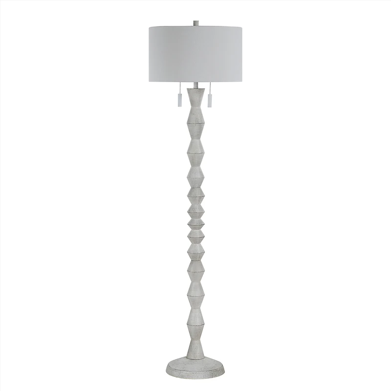 Rehaussez votre intérieur grâce au style classique de ce lampadaire. Caractérisé par un aspect tourné et une texture de bois blanc peint à la main, il sera l'ajout idéal pour tout salon, salle à manger ou bureau moderne ou transitionnel. Il suffit d