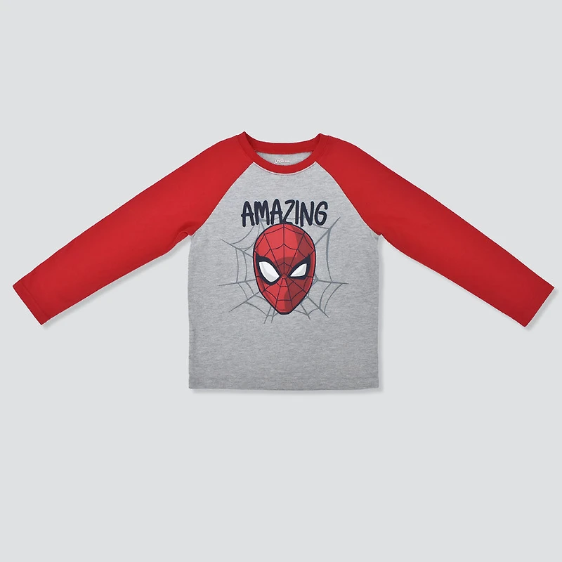 Spiderman haut pour garçons. Haut à manches longues raglan avec encolure côtelés et illustration imprimé sur le devant. Ce cool T-shirt sera son T-shirt favori.