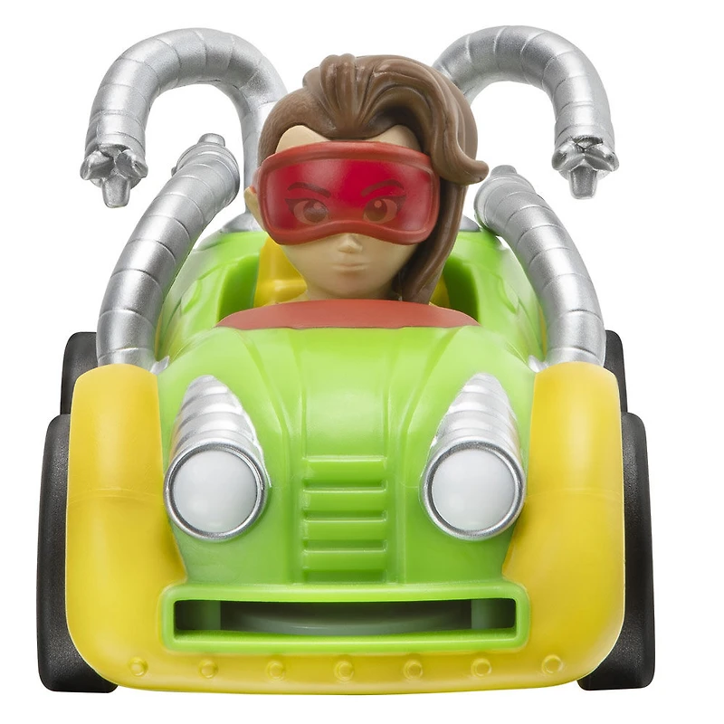 Doc Ock sillonne la ville entre deux aventures, et maintenant votre petit adepte de Spidey peut le faire aussi, grâce aux petits véhicules Lanceurs de disques, les véhicules de 12,7 cm à roue libre! Ce véhicule Lanceur de disques est fourni avec un personnage préféré des adeptes, Doc Ock! Et le véhicule vert et jaune qui s'inspire de de celui de Doc Ock captera certainement leur attention. En cas d'ennuis, le Lanceur peut propulser un disque lorsqu'on appuie sur la tête du personnage pour écarter le danger. Les Lanceurs de disques sont fournis avec 2 disques chacun, qui peuvent être rangés dans le capot de la voiture pour s'amuser lorsqu'on se déplace. Les véhicules sont en roue libre, et donc on peut les emmener faire un tour! VAS-Y DOC! Pour d'autres aventures extraordinaires, n'oublie pas de collectionner tous les Lanceurs de disques!
