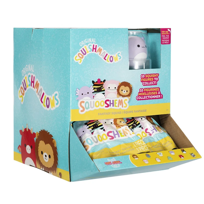 L'heure du squish devient l'heure du jeu lorsque vous ajoutez ce SquooshEms à votre équipe de Squishmallows. Ce petit SquooshEms ultra-squeezable de 2,5 pouces est fabriqué à partir de matériaux en mousse de haute qualité, résistants et compressibles. Apportez SquooshEms à l'école, décorez votre bureau ou serrez-le dans votre main. La coque épaisse de la balle anti-stress et le centre gluant t'aideront à te détendre n'importe où ! Ces Squishmallows SquooshEms adorables et faciles à presser sont les plus mignons des jouets de collection de type balle anti-stress. Rejoins l'équipe !