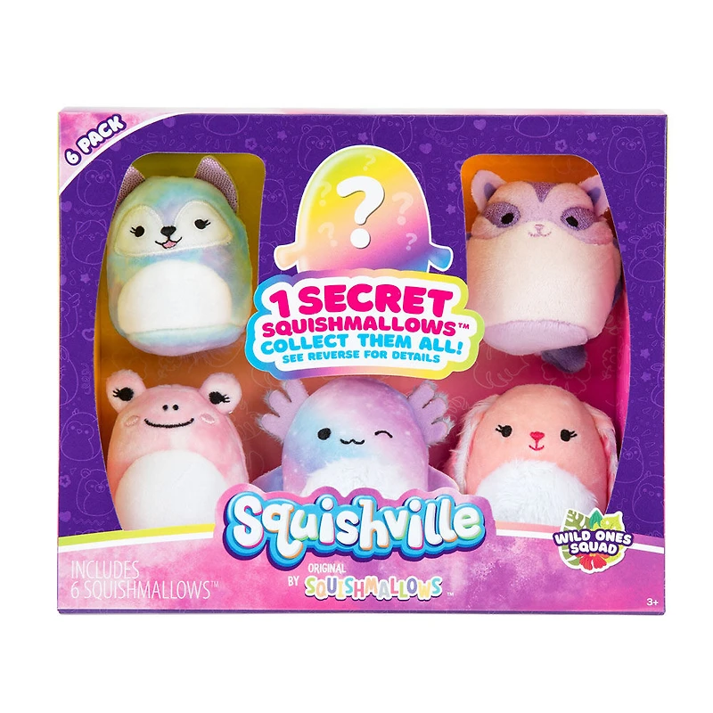 Trouve les créatures les plus sauvages dans l'escouade déchaînée! Le paquet de 6 comprend quelques-uns de tes Squishmallows préférés dans un format exclusif de 5 cm : Akina l'axolotl, Brinkley le lapin, Felexine le renard, Fanina la grenouille et Joy le phalanger du sucre, PLUS un Squishmallows surprise! Tous possèdent une rembourrure super douce et ont une personnalité débordante. Collectionne cet ensemble et les quatre styles de ces paquets de 6, de Squishville!