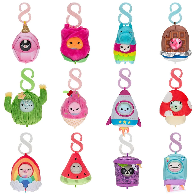 Découvre l'ultime escouade Squish sur le pouce! Avec les pinces Style et Squish, tu peux attacher, squisher et relier tes Squishmallows préférés de 5 cm dans un accessoire en peluche. Ces peluches ultra compressibles sont fabriquées avec des matériaux ultra doux de haute qualité et sont parfaites pour les sacs à dos et les bagages. Lorsque tu relies les pinces Style et Squish ensemble, tu peux les porter autour de ta taille ou de ton cou, ou les accrocher au mur comme de petits rideaux. Grâce à ces adorables Squishmallows de Squishville, tu peux créer ta propre collection de peluches douces et mignonnes. Connecte-toi, joins-toi à l'équipe et découvre le confort et le caractère mignon des Squishmallows originaux!
