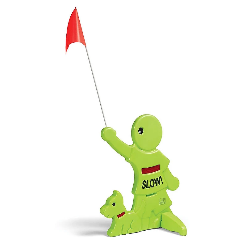 Gardez les enfants sains et saufs lorsqu'ils jouent dehors avec l'avertissement visuel KidAlert & Pup Step 2. Ce compagnon de sécurité vert néon avec réflecteurs et drapeau avertisseur est un avertissement visuel pour les conducteurs qui passent de ralentir et de faire attention en traversant votre quartier. Il peut être installé près de votre maison, au camping ou au terrain de jeu pour rappeler aux motoristes qu'il y a des enfants qui jouent. Fabriqué aux É.-U. avec des pièces fabriquées aux É.-U.