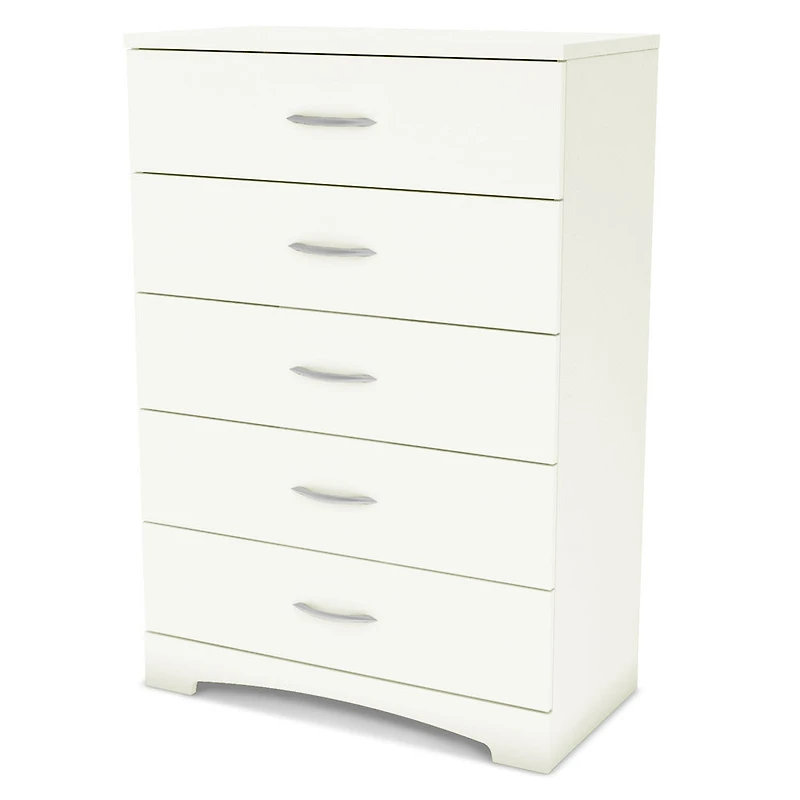 Poignées en métal au fini nickel brossé Coulisses de métal Offre cinq tiroirs pratiques. Accessoires non inclus Doit être complètement assemblé par 2 adultes (outils non inclus) Sera livré en une boîte lourde, assurez-vous d'avoir un ami avec vous Fabriqué au Canada à partir de panneaux de particules laminés non toxiques. Garantie limitée de 5 ans. Des questions? Contactez Meubles South Shore, disponible 7/7 : 1 800 290-0465 ou www.southshore.ca Grâce à ses rebords profilés, cette commode aux lignes épurées s'accorde bien aux styles d'aujourd'hui. Son style épuré et minimaliste vous offrira une toile de fond idéale pour un décor moderne et coloré. Allez, avouez que votre choix est fait! Assortiment élargi disponible en ligne. Cet article n'est pas disponible en magasin.