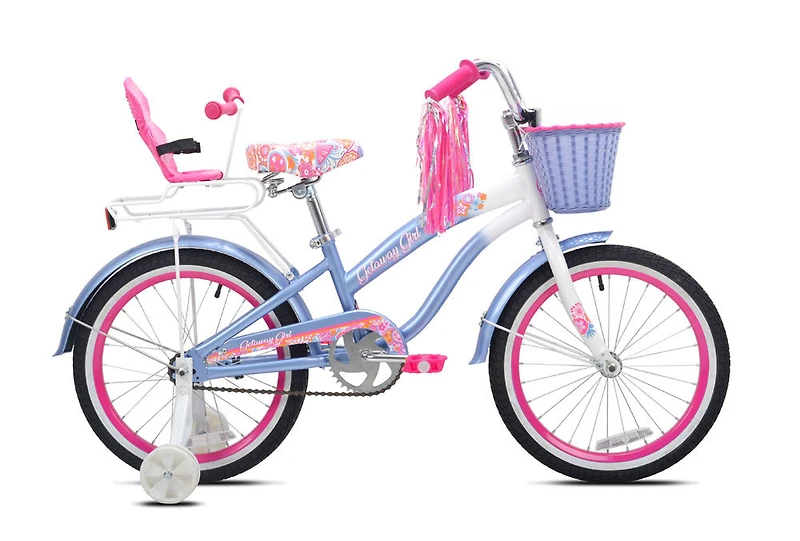 Ce vélo pour filles Avigo Getaway Girl 18 po a toutes sortes d'accessoires! Un porte-poupée arrière avec courroie est inclus pour garder les poupées bien en place lors des aventures. Ce vélo est doté d'un guidon cruiser classique pour le confort du cycliste. Le siège à ressort donne une conduite en toute douceur. Les garde-boues avant et arrière aident à garder le cycliste propre et sec. Ce vélo est aussi doté de pneus à flanc blancs élégants et d'un panier avant amovible pour transporter des objets lors des randonnées. Ce vélo offre tout ce que vous pouvez souhaiter pour une expérience amusante et agréable.