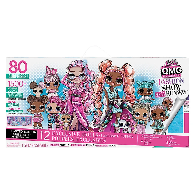 12 POUPÉES EXCLUSIVES INCLUSES : 2 poupées-mannequins OMG avec articles mode transformables, 6 poupées LOL Surprise, 2 animaux et 2 poupées Lil Sisters, ainsi que des autocollants, des accessoires détaillés, des tenues chic pour un amusement sans fin, tout en un !