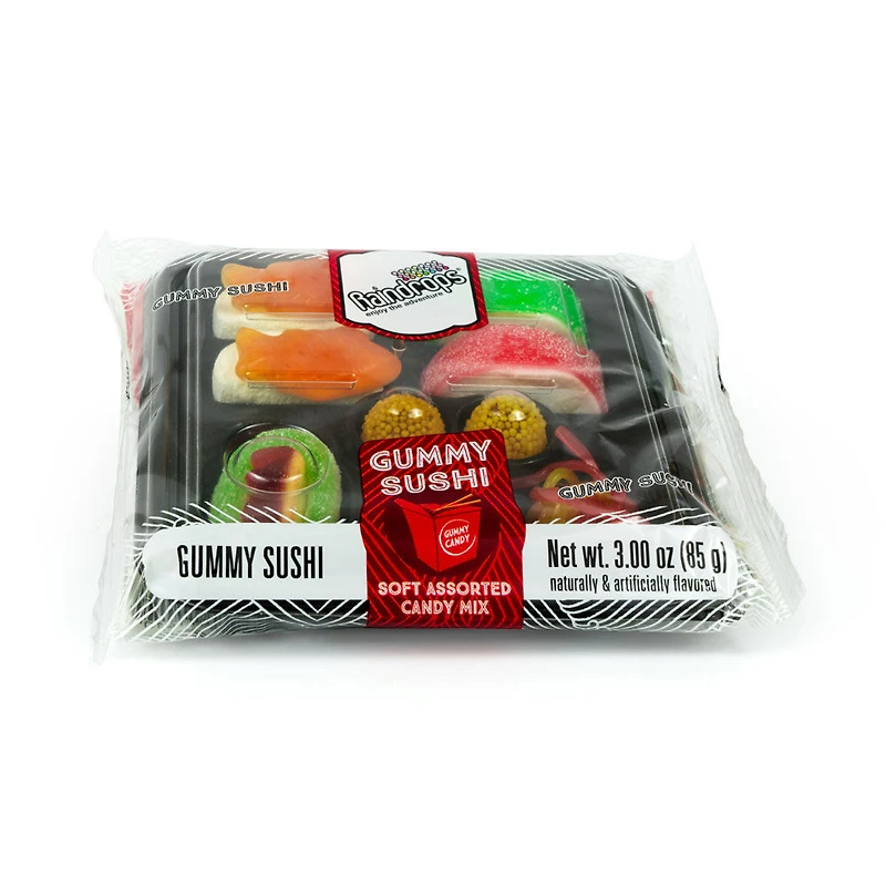 L'ensemble Sushi Raindrops offre une amusante variété de bonbons gélatine à déguster, de formes, tailles et textures différentes. Bienvenue aux AMATEURS DE SUSHIS!