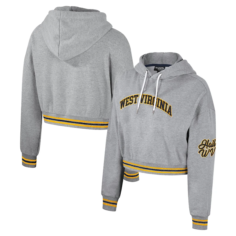 Sweat à capuche court scintillant pour femmes, The Wild Collective, gris chiné, West Virginia Mountaineers