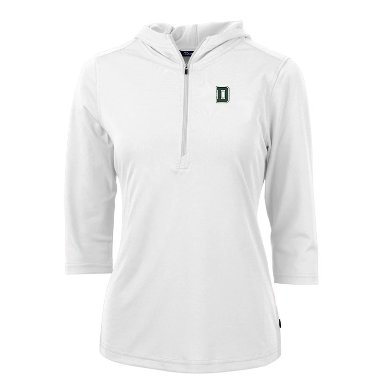 Le sweat à capuche demi-zip et manches 3/4 pour femme Cutter & Buck White Dartmouth Big Green Virtue Eco Pique est idéal pour afficher votre soutien aux Dartmouth Big Green. Fabriqué dans un mélange de polyester et d'élasthanne évacuant l'humidité, ce sweat à capuche vous gardera confortablement au sec tout au long du match. Sa fermeture demi-zip et sa capuche vous offrent un confort optimal, tandis que sa protection solaire UPF 25+ vous protège des rayons nocifs du soleil. Avec ses motifs Dartmouth Big Green brodés, ce sweat à capuche ne manquera pas de faire tourner les têtes.