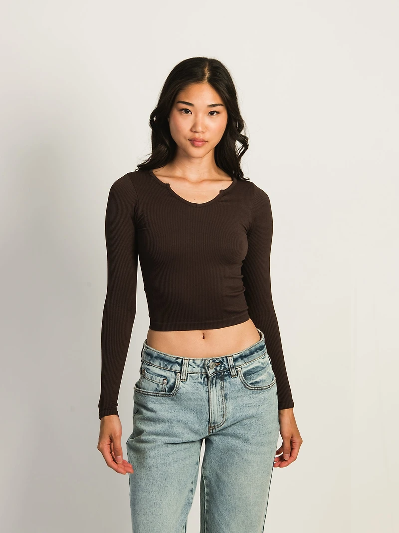 T-SHIRT À ENCOCHE HARLOW HARPER MANCHES LONGUES - CHOCOLAT