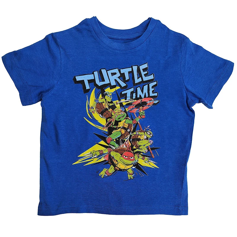 T-shirt à manches courtes TMNT avec sérigraphie sur le devant.Lavage en machine à l'eau froide. Jersey 60 % coton/ 40 % polyester