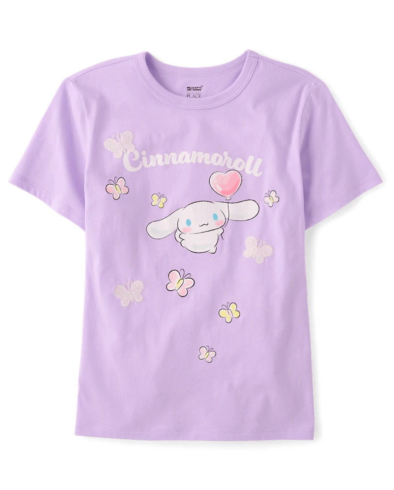 T-shirt à motif papillon brodé en point de satin Cinnamoroll™ pour filles