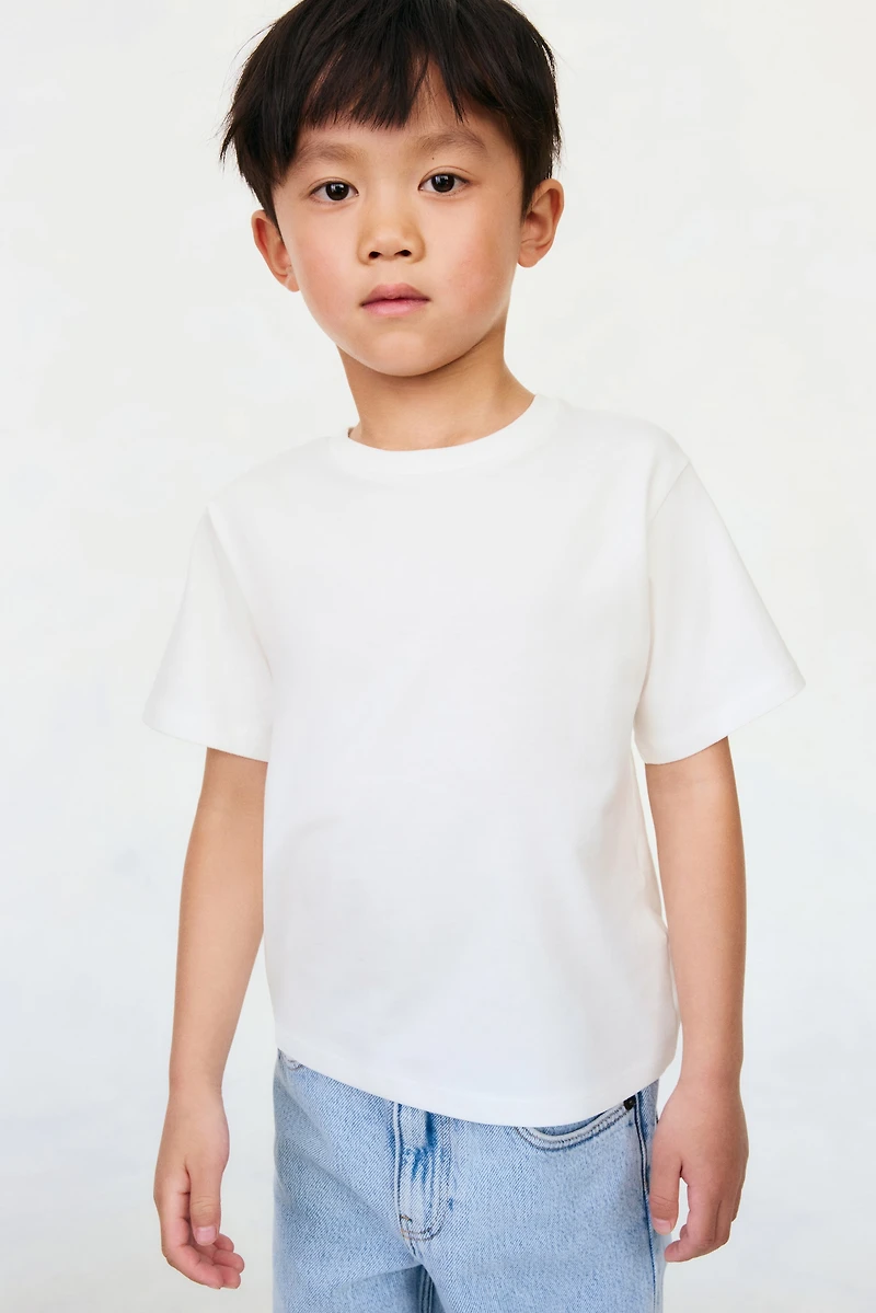 H&M Adorables. T-shirt en jersey très doux, réalisé à partir de coton pima de haute qualité. Coupe flottante avec bande côtelée autour de l'encolure ronde, emmanchures descendues et manches courtes. Notre jersey de coton présente un GSM élevé, il est donc plus épais et durable, tout en restant très confortable. La collection H&M Adorables regroupe une sélection d'articles de qualité très confortables au charme intemporel.